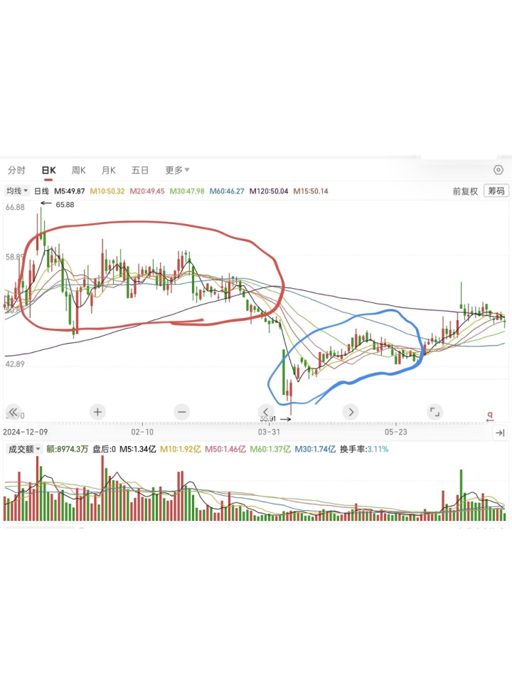 只要价格反弹到这里,所有人一起卖,集中抛压砸下来,股价就会震荡、回落,而新冲进去的散户,又会接下这些抛盘,变成新的被套者。